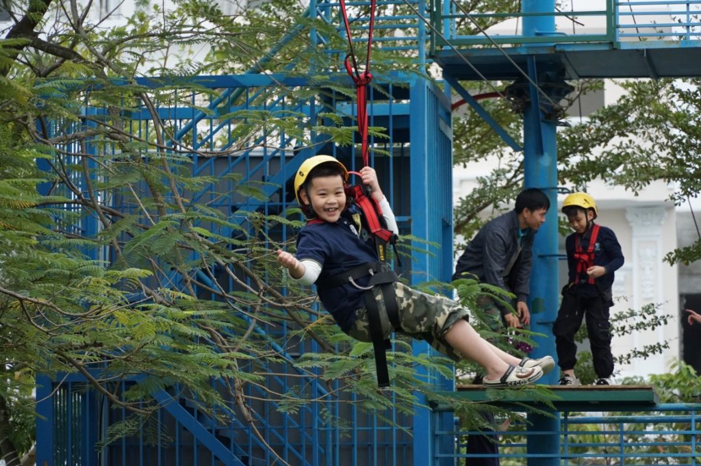 Sân bóng tích hợp Khu rèn luyện theo mô hình quân đội West Point rộng gần 2000 m2 – chia nhiều level với các thử thách mặt đất và trên cao 3m, 6m phù hợp các em học sinh từ Lớp 1 đến Lớp 9